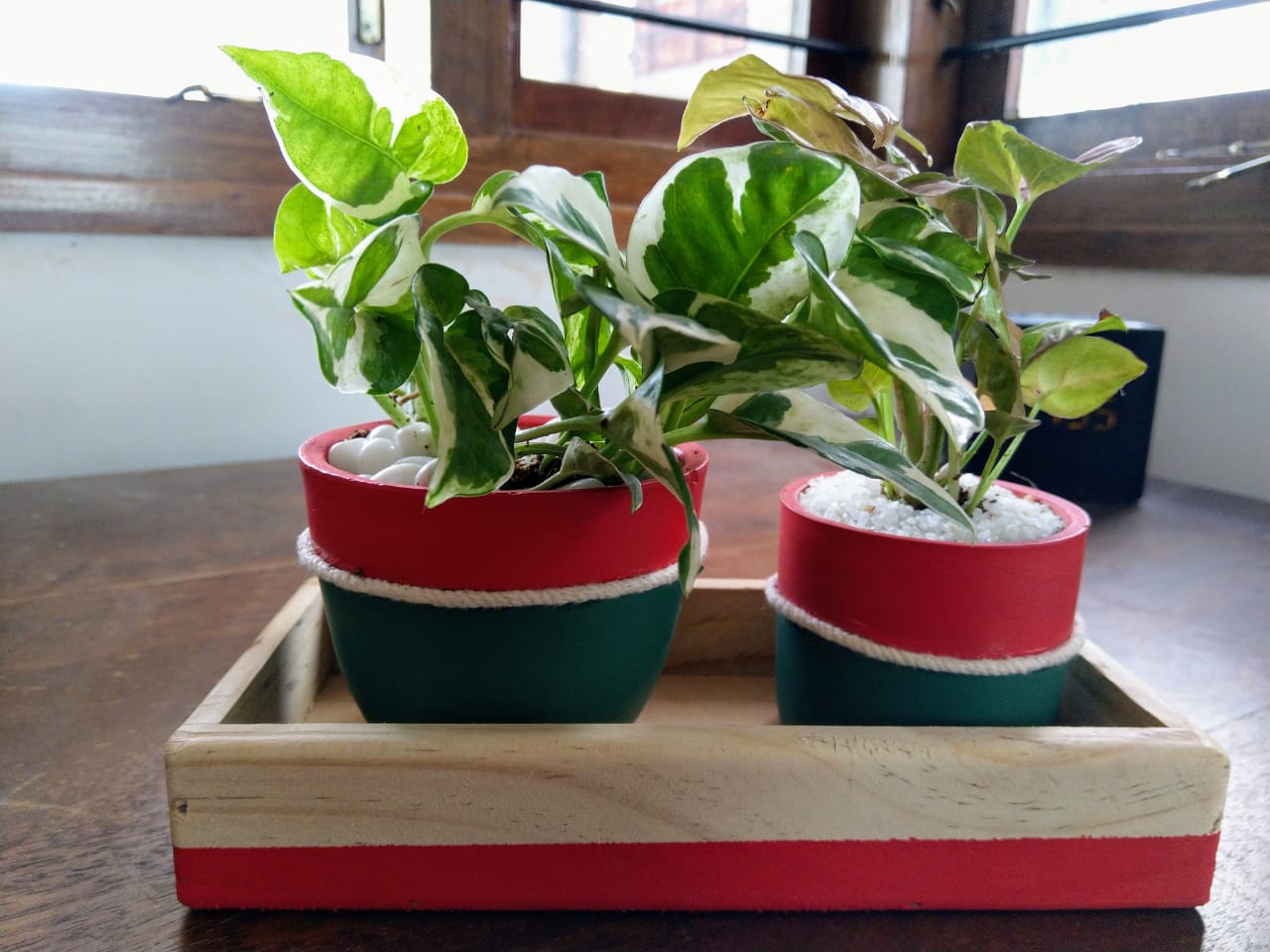 View full detailsThree indoor plants in terracotta pots all painted in Xmas theme! The plants come wrapped in a cute box and festive glittery packing. Pot size : ...