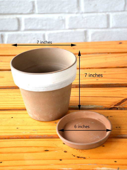7 inch Banded Ceramic Pot in Terracotta finish