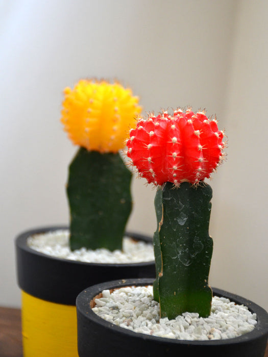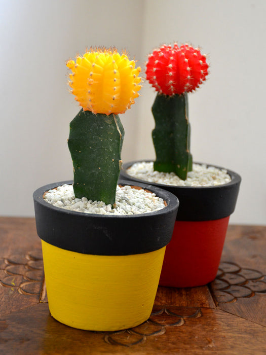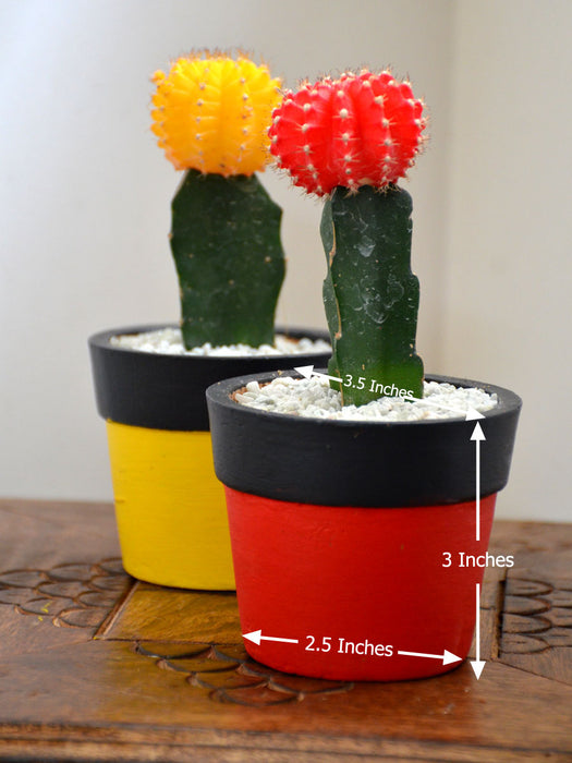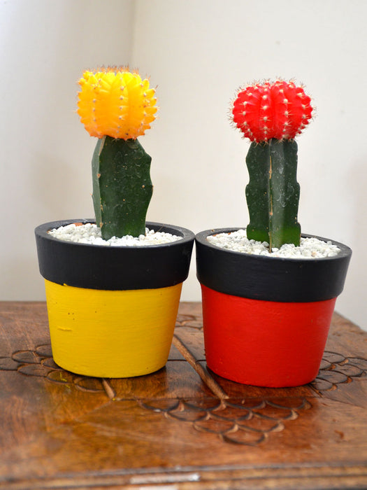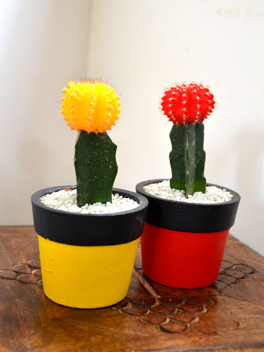 Cactus Twins  : 2 beautiful terracotta pots with Colored Hybrid Cactus - mixed and per availability. The pots are available in painted and unpainted options.