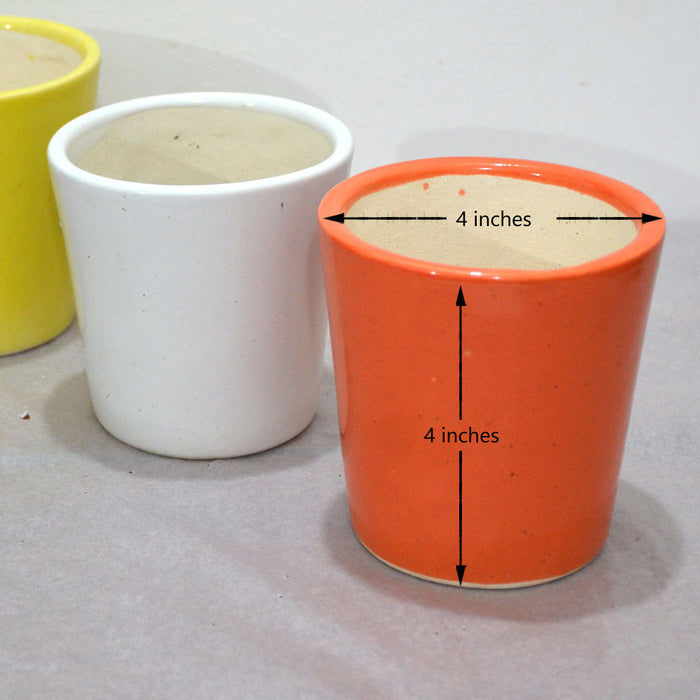 Order Details : A set of 3 Assorted Ceramic Pots of 4 Inch diameter.