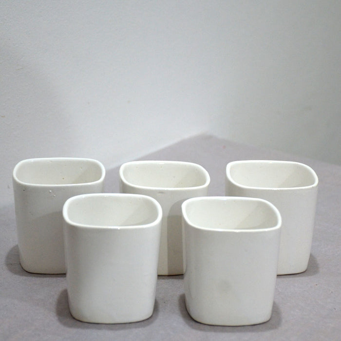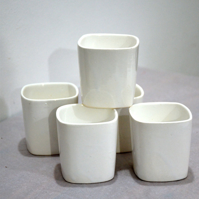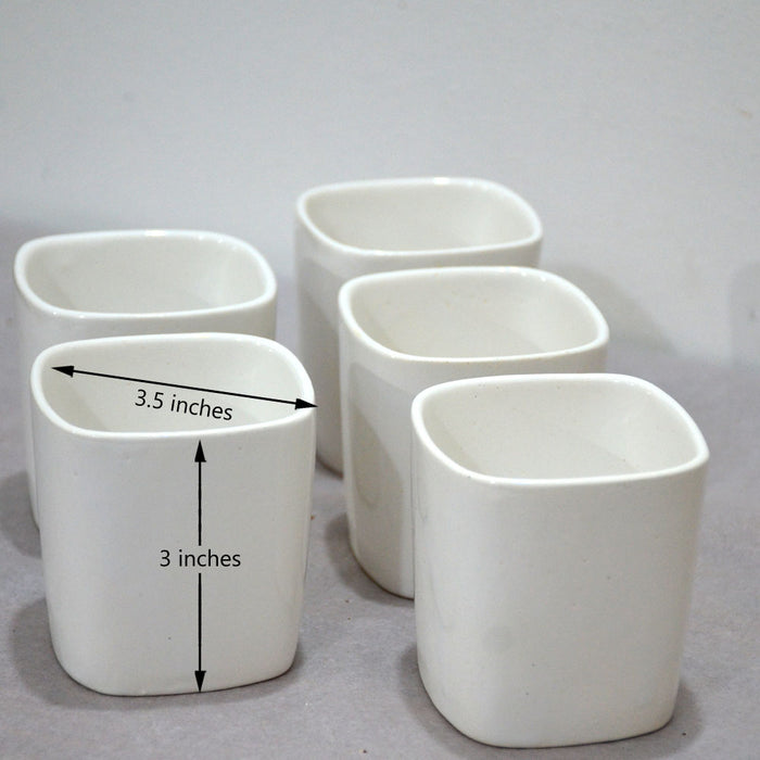 Order Details : Set of 5 Square White Ceramic Pots (3.5 Inches opening with an height of 3 Inches)