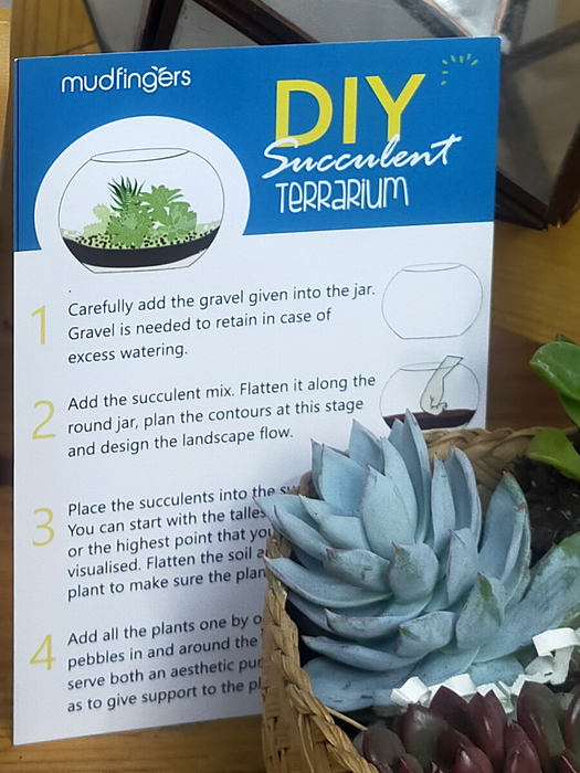 A simple kit using which you can create your own terrariums sitting in your comfort zone! This kit will include live succulents (3-6 depending upon the sizes available), 10 inch jar, gravel, two types of pebbles, potting mixture and an instruction card that shows step by step instructions.