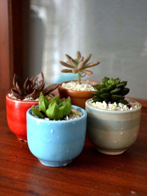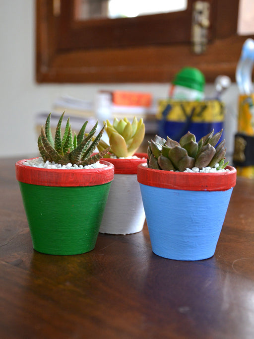 MudfingersLow stockClay Pot Size : 2.5" x 2.5" inches Succulent Triplets (Colored) : 3 beautiful Clay pots, painted with bright colors with Succulents - mixed and...