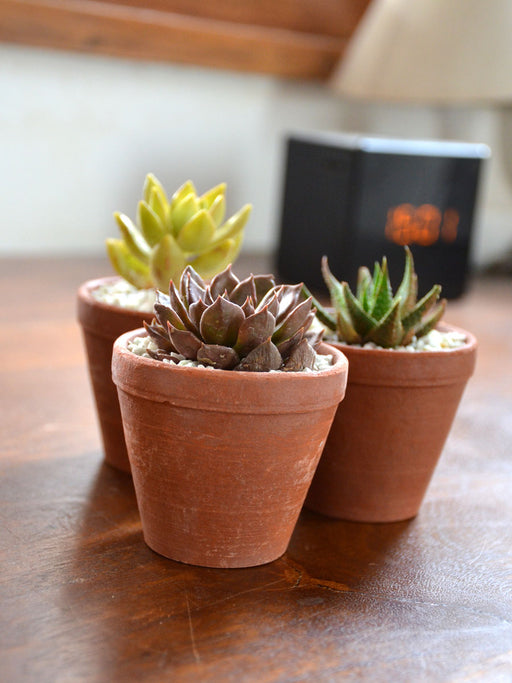 Clay Pot size : 2.5" x 2.5" Inches Succulent Triplets (Terracotta) : 3 beautiful Clay pots, unpainted natural Terracotta with Succ...
