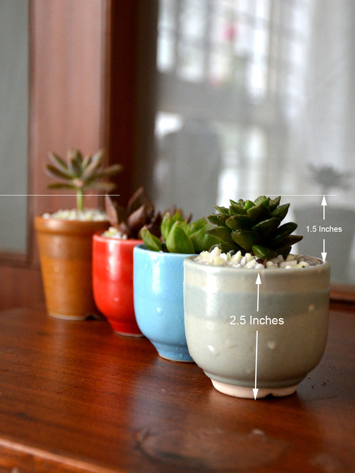 MudfingersIn stockCeramic Pot size : 2" x 2" Succulents in Ceramic Pots (Set of 4) : 4 beautiful Ceramic pots, in bright colors with Succulents - mixed and per avail...