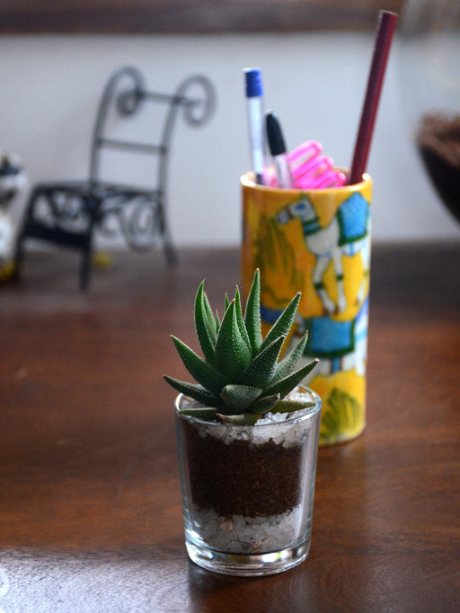 MudfingersIn stockSize : 5.5" tall with plant. Ink Pot : 2.5" tall; 3" wide Inches Design Details : Succulent comes in a good quality Ink Pot shaped glass-bowl ...