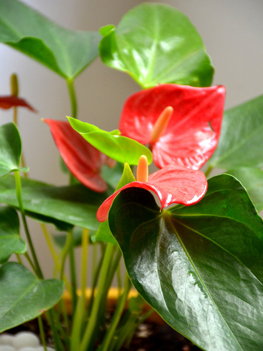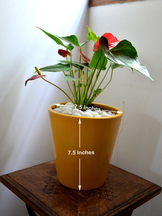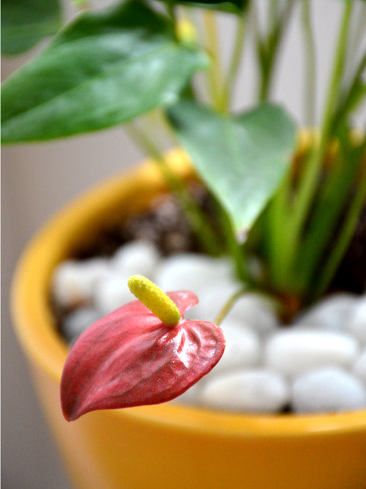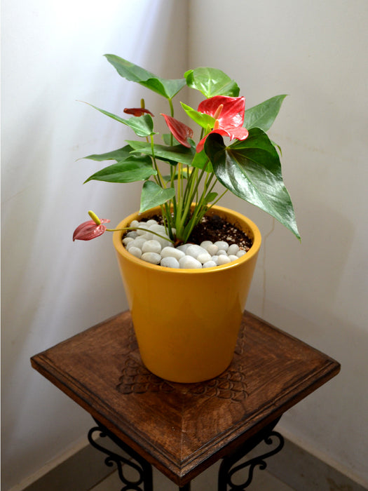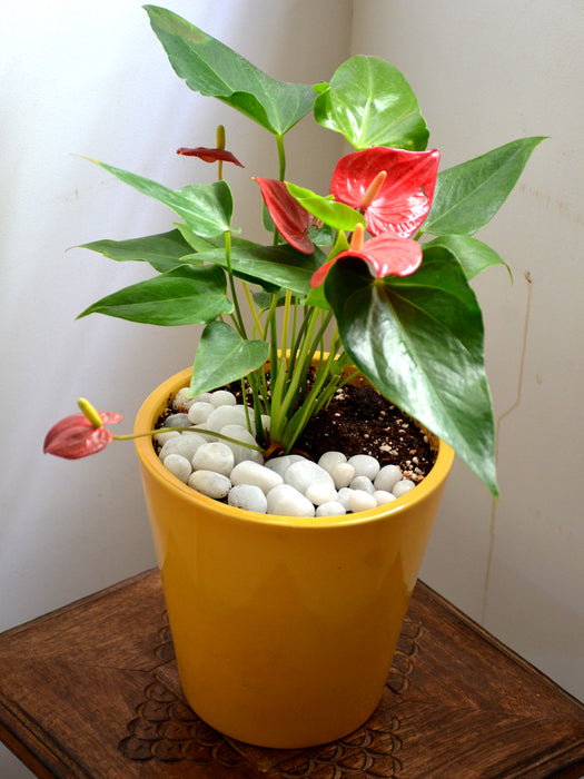 Anthurium in Ceramic Pot : True to its common name of painter's palette, Anthuriums are now available in almost every color of the palette. Anthuriums perhaps belong to a small group of houseplants that are treasured both for their flowers as well as their rich foliage.