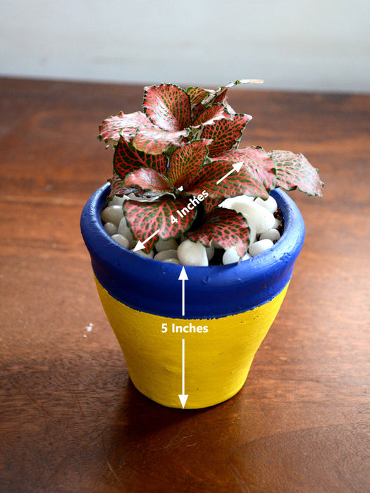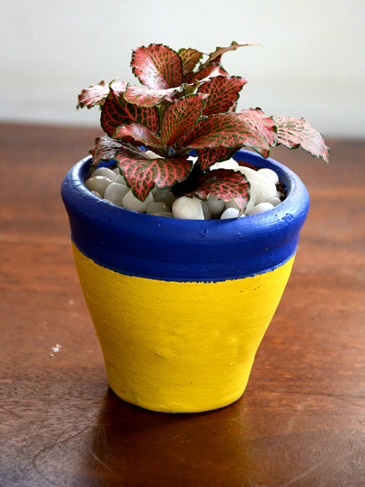 Bright Sunny Fittonia : A vibrant coloured Fittonia is planted in a bright coloured mud pot.