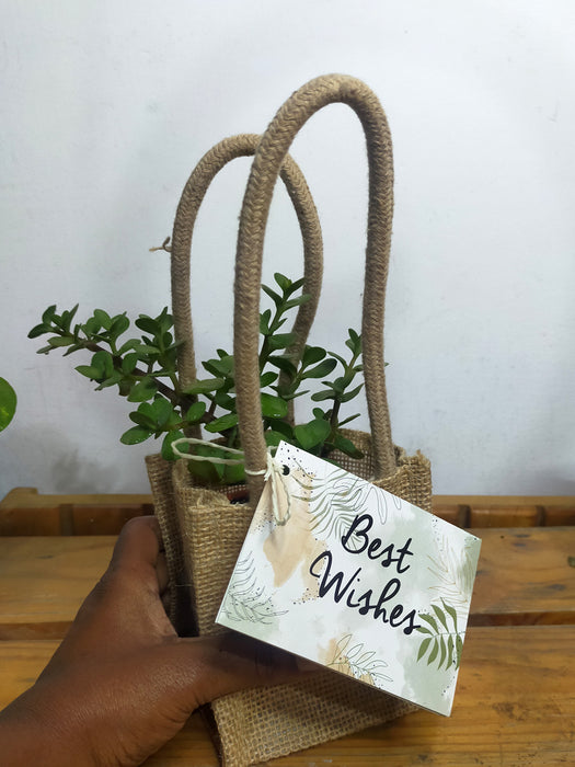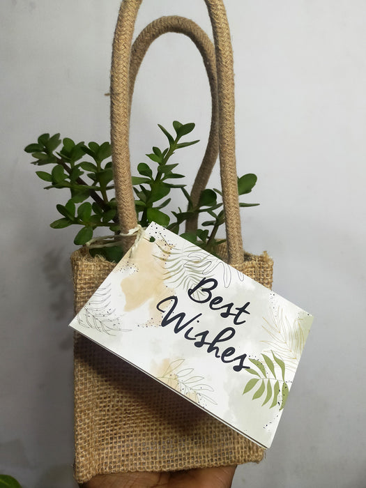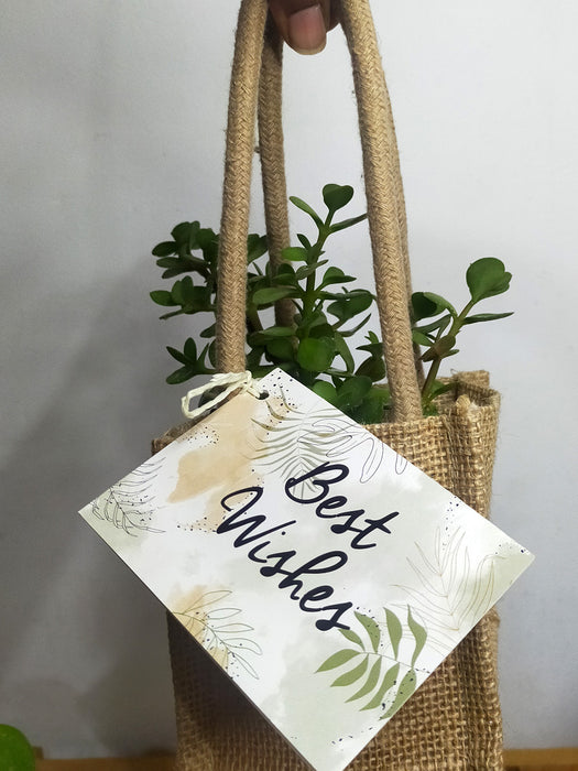 A Jade plant is supposed to bring loads of luck into your world. This elegant beauty is planted in 3.5 inch Ceramic pot and is placed inside an elegant organic Jute Bag. We can add a note forwith your custom message as well.