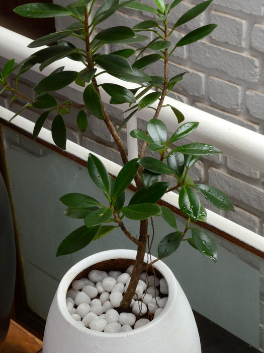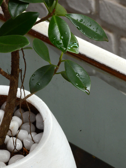 Ficus Green Island : It is a typical Ficus plant that can thrive in an eastern sill or window. Excellent indoor plants. These gorgeous beauties are planted in a white terracotta pot to enhance the deep emerald of the leaves.
