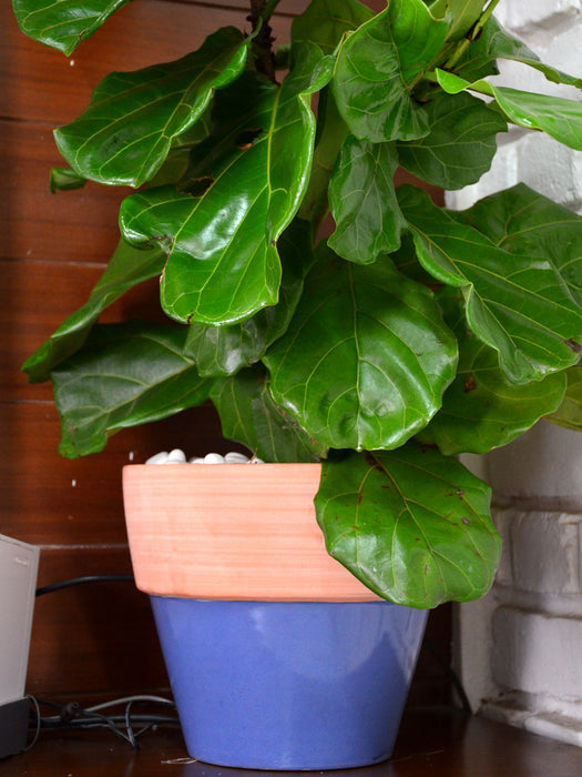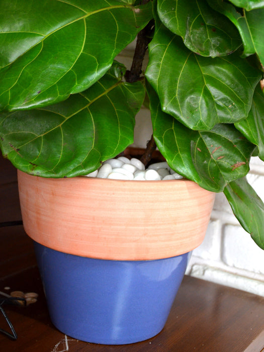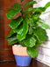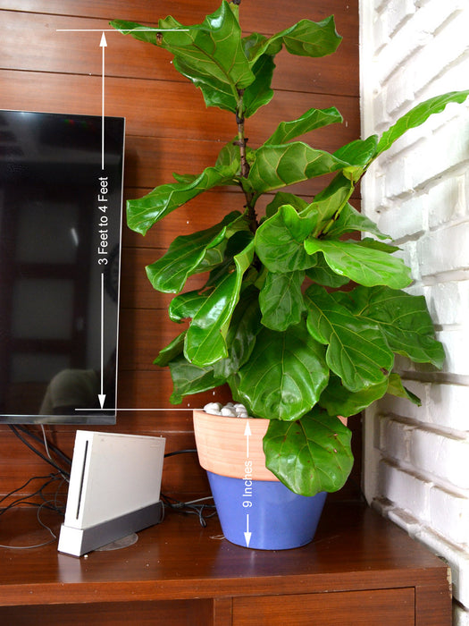 Fiddle Leaf Fig in Ceramic Pot : A graceful indoor plant has leaves which are leathery, dark green, and pretty very large. This is a tough plant that adapts easily to conditions. Once acclimated, it can grow to 6 feet or taller.