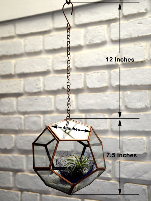 Hanging Pentagonal Air Terrarium : This Air terrarium comes with Tillandsia which are adaptive and hardy enough to be grown indoors with adequate lighting and care - with most types not requiring any soil or such planting medium.They normally grow without soil while attached to other plants. These air plants have no roots and grow on shifting desert soil.
