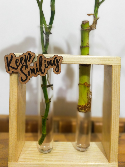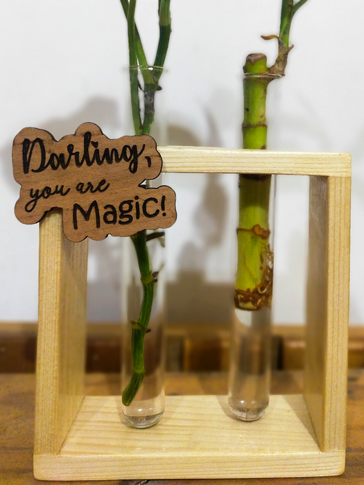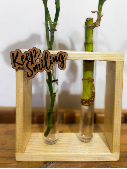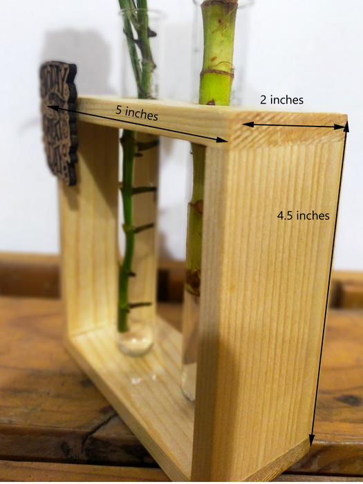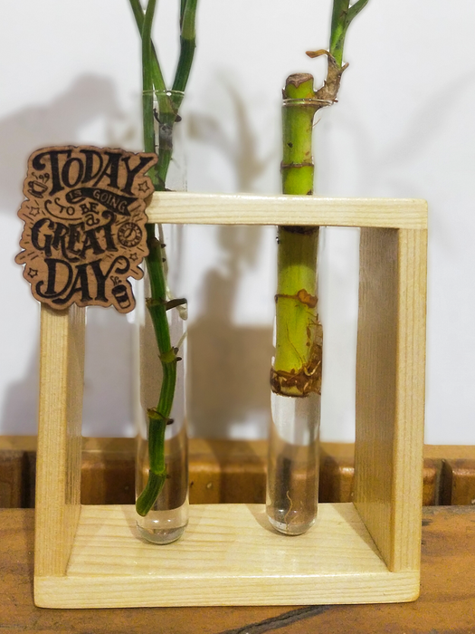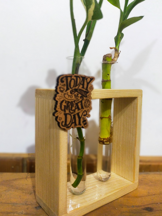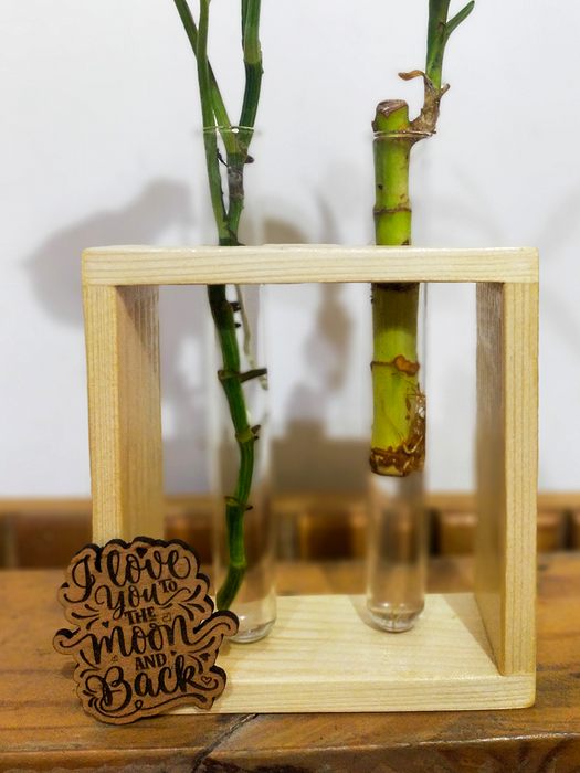 Hydroponic Indoor Plant in Glass - Double test Tube in Wooden Frame
