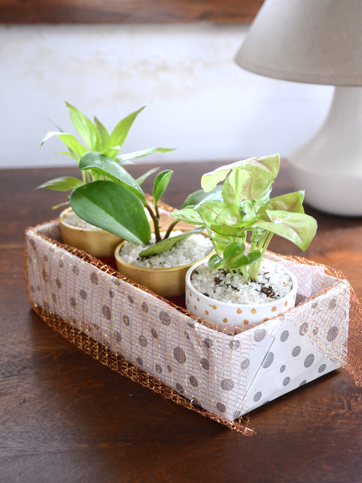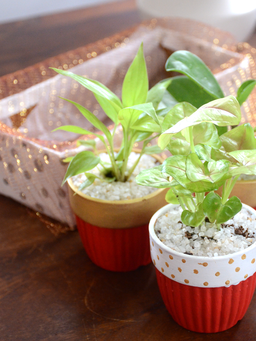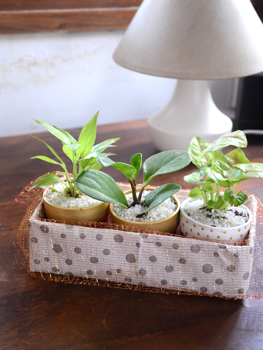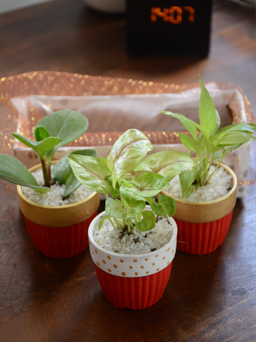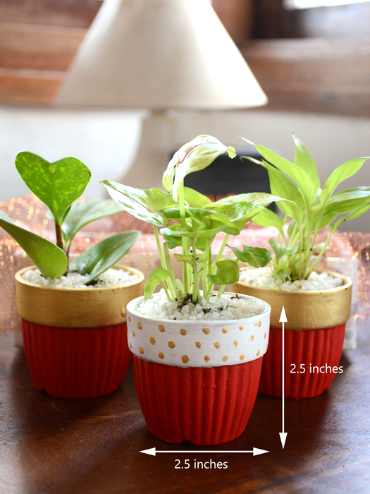 Set of 3 : Comes with 3 painted terracotta Pots with Indoor plants, as per availability.