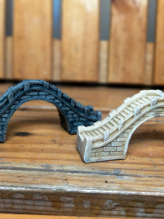Add a bridge to your dish garden terrariums to create a watery oasis - or something equally cool.