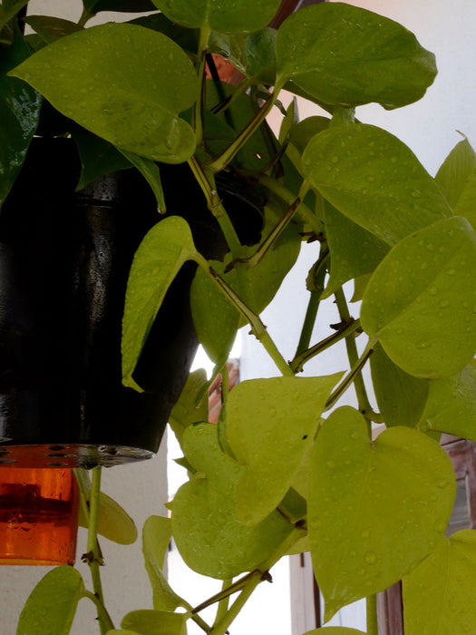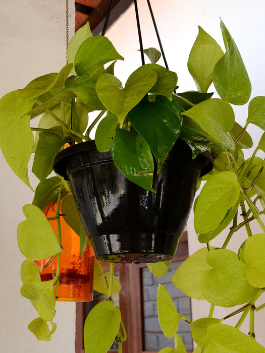 Neon Plant (Scindapsus Aureus) : The neon plant is an easy to grow, hardy indoor plant. It is a very good air purifier and cleanses the surrounding off toxins. Available in creeper version as well as a miniature versions that can be placed on workstations. If put on the ground, they make excellent ground covers too. This plant is in a plastic hanging pot.