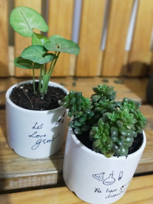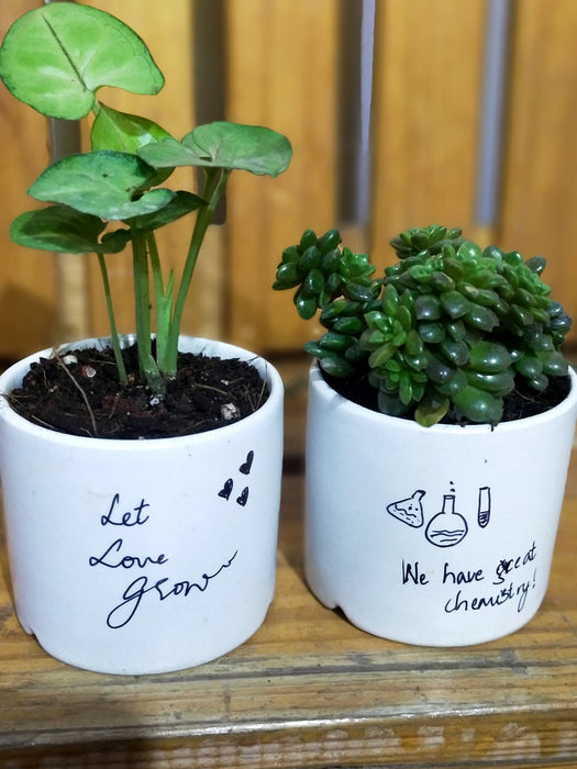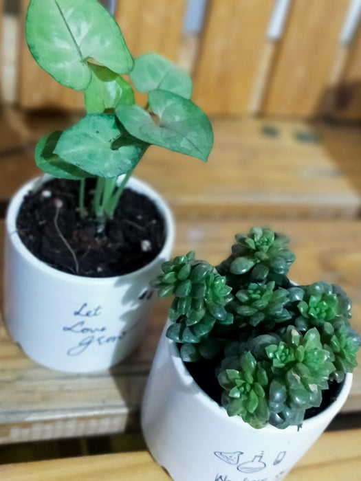 What you get: A set of 2 plants - house plant and Succulent in cure 2.5 inches Ceramic pot.
