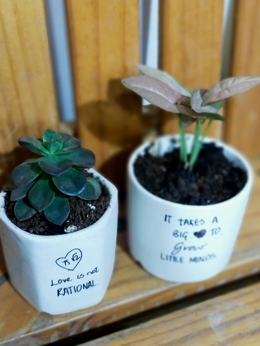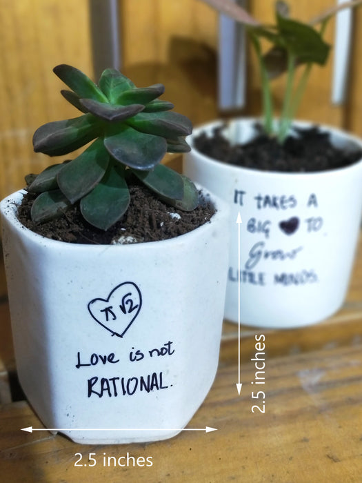 What you get: A set of 2 plants - house plant and Succulent in cure 2.5 inches Ceramic pot.