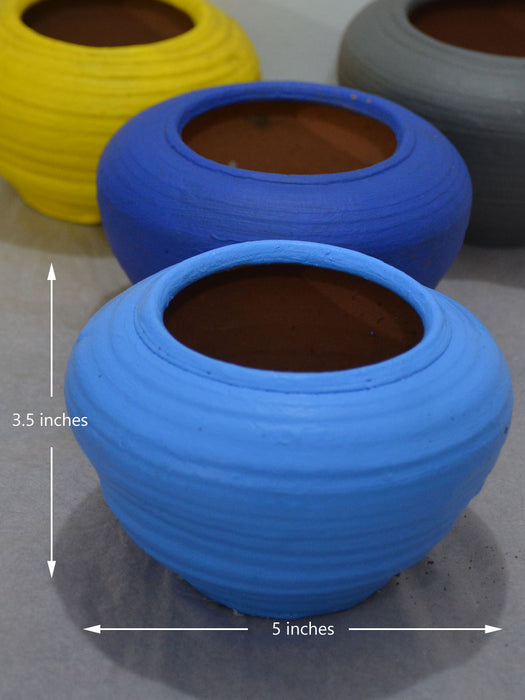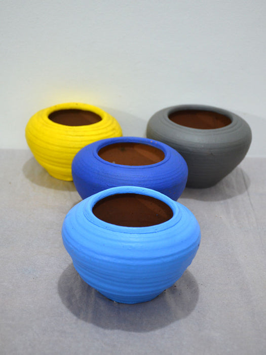 What you get in the order : A set of 4 Ribbed Painted Terracotta Pots of 3.5" diameter.