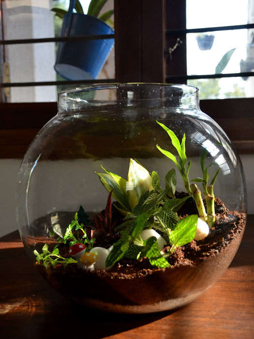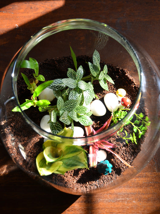 Sunlight : Place your terrarium in a bright area with indirect sunlight, (ex. windowsill, well-lit workstations). These terrariums are a closed system; it can get too hot if placed near a direct heat source and the plants may burn.