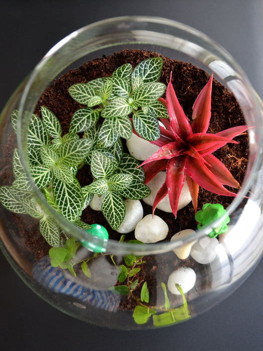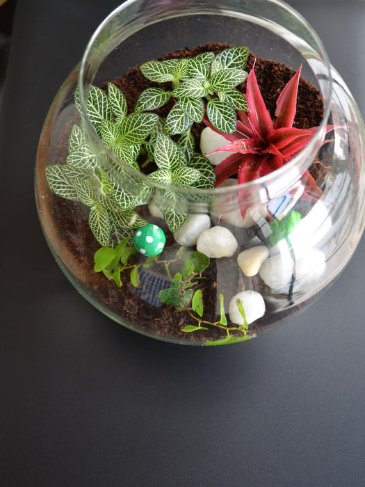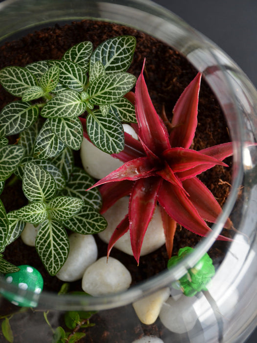 Sunlight : Place your terrarium in a bright area with indirect sunlight, (ex. windowsill, well-lit workstations). These terrariums are a closed system; it can get too hot if placed near a direct heat source and the plants may burn.