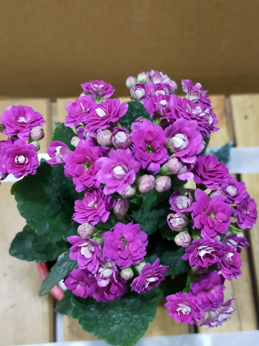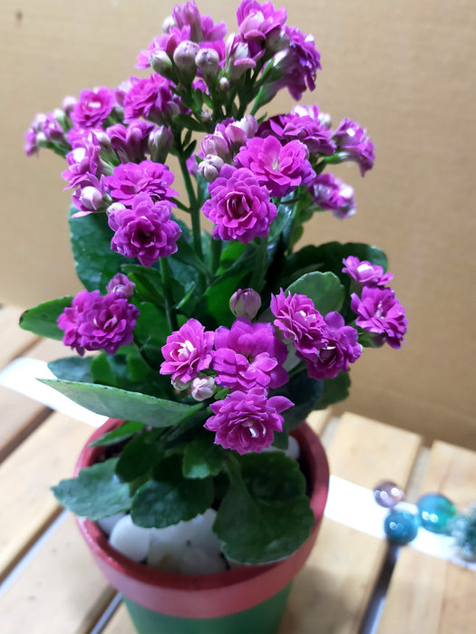 Kalanchoe flowering plant in : A colourful flowering plant, Kalanchoe is a long flowering plant. The blooms stay throughout winter and early Indian Summers. They come in all colours to enrich your household. This pot is painted in bright Xmas colours!