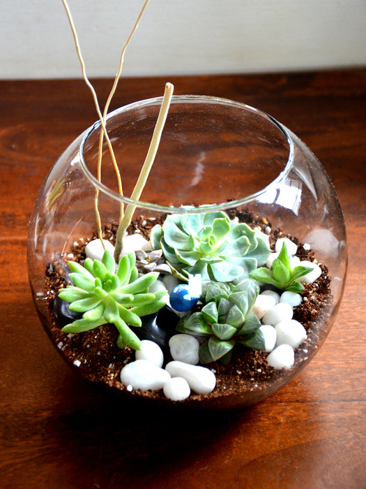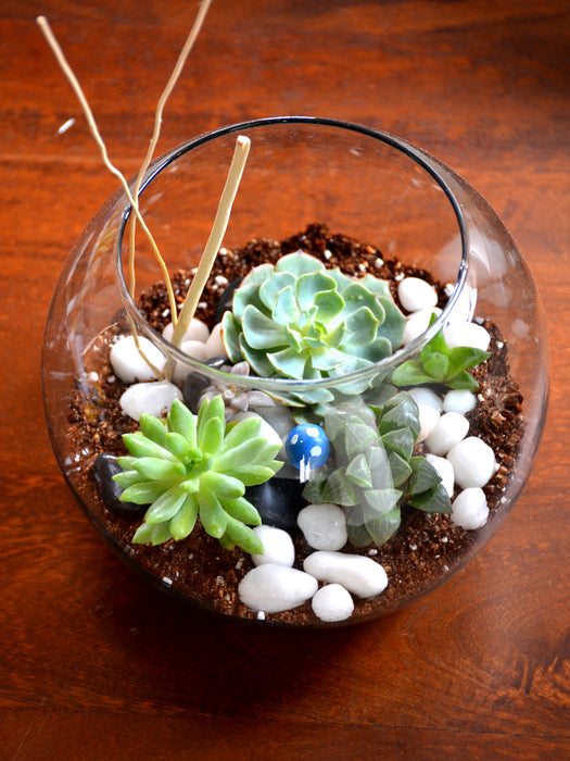 Sphere Succulent Terrarium (8 Inches - Open Terrarium) : A terrarium is a collection of small plants growing in a transparent, sealed or open container. Inside a terrarium's walls, many natural processes may be observed: photosynthesis, respiration and the water cycle.