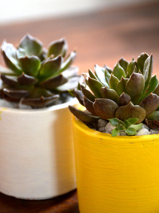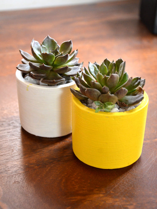 Succulent Twins (Colored) : 2 beautiful Clay pots, painted with bright colors with Succulents - mixed and per availability.