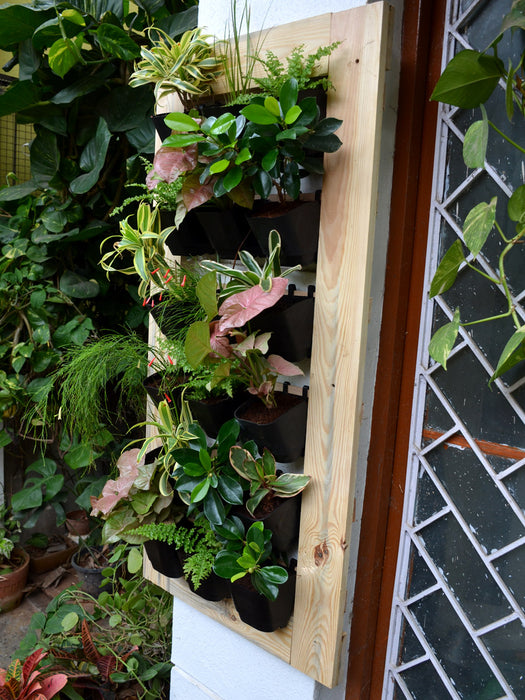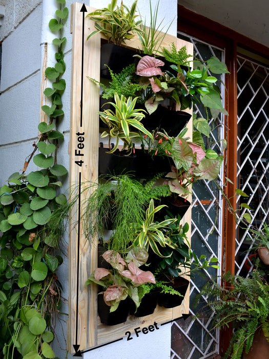 Vertical Garden (4 X 2 Ft): Is an eclectic mix of various tropical plants aligned vertically which comes to you in a beautiful Pine Wood Frame holding 15 potted plants!